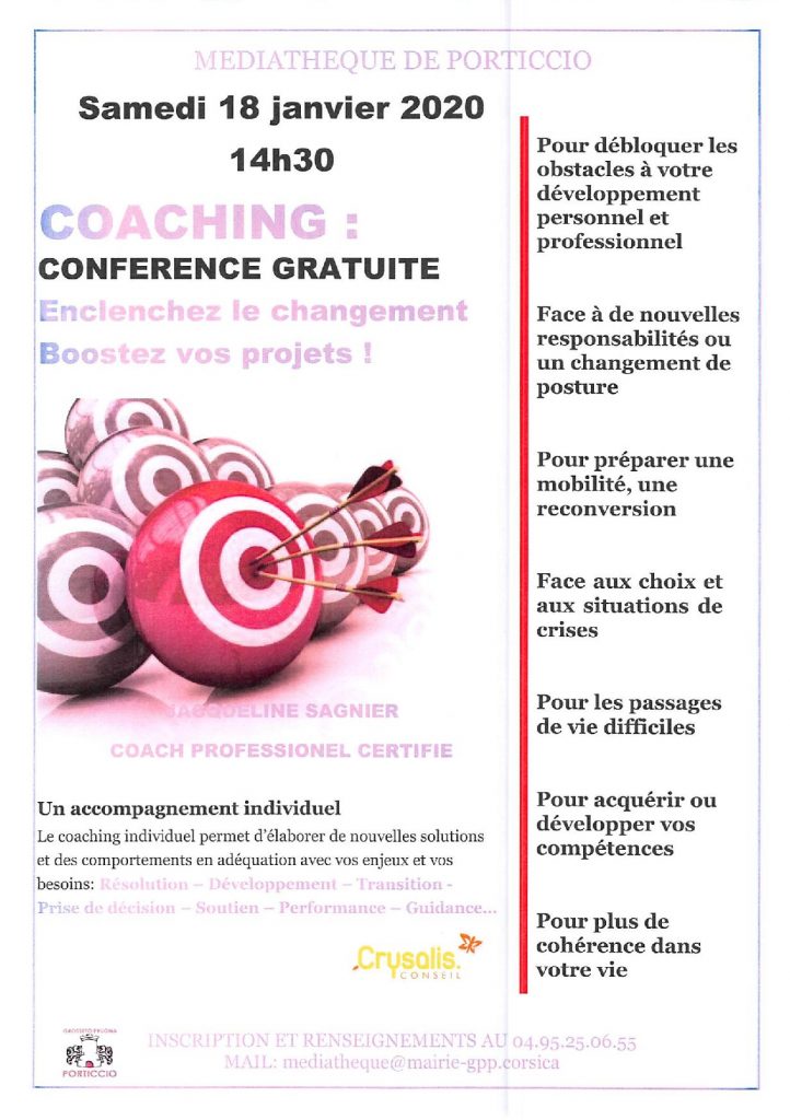 • Samedi 18 Janvier : Conférence sur le coaching – Mme Sagnier à 14h30
