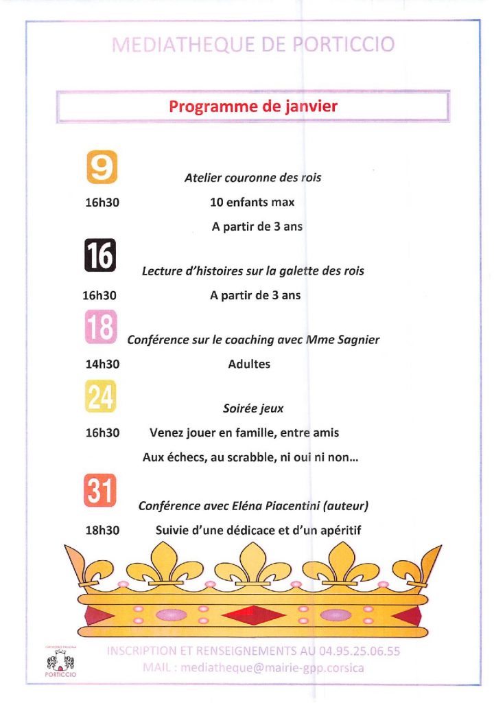 INSCRIPTION ET RENSEIGNEMENTS AU 04.95.25.06.55 ou par mail : mediatheque@mairie-gpp.corsica