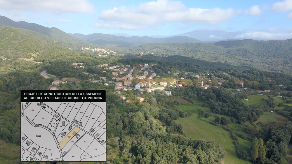 La construction du lotissement au cœur du village de Grosseto-Prugna s’inscrit dans la continuité de l’action de revalorisation et de structuration du cadre de vie de la commune. Le lotissement constitue un projet phare, avec pour ambition de répondre à un enjeu démographique et sociétal. Situés à une trentaine de minutes de la station balnéaire de Porticcio et d’Ajaccio, le village de Grosseto-Prugna et ses différents hameaux, se trouvent sur un axe routier prioritaire desservant le sud de l’île, l’attractivité de la commune n’est donc plus à démontrer. Toutefois, le parc immobilier actuel ne permet pas de satisfaire toutes les demandes, notamment d’accès à la propriété. Ce projet de lotissement sera ainsi l’occasion de proposer, notamment à certaines familles de la commune, d’accéder à un habitat neuf, mais aussi de répondre à un besoin en termes de logements à loyers plafonnés.