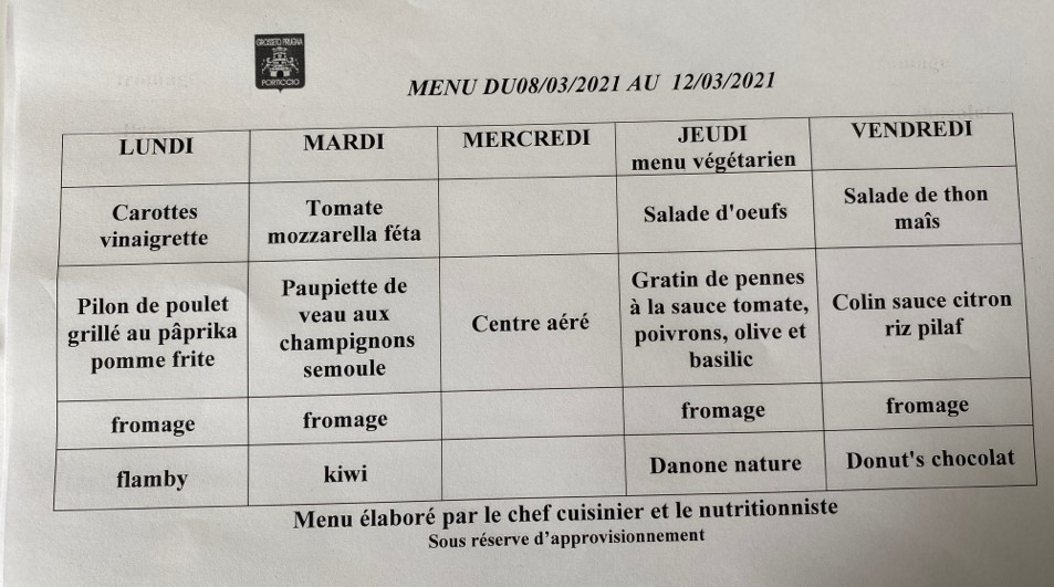 Retrouvez ici l’ensemble des menus proposés aux restaurants scolaires, chaque semaine pour les écoles de Grosseto-Prugna et Porticcio.