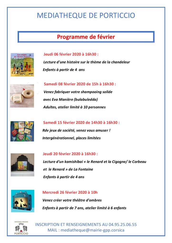 INSCRIPTION ET RENSEIGNEMENTS AU 04.95.25.06.55 ou par mail : mediatheque@mairie-gpp.corsica