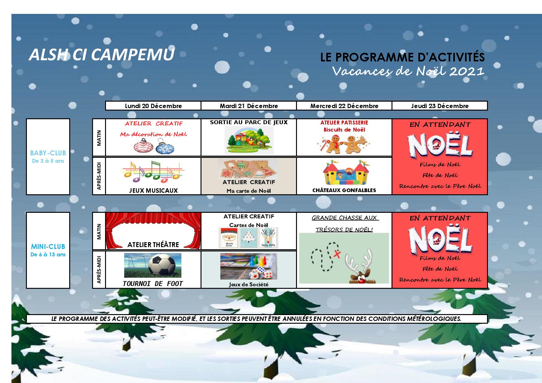 Les vacances de Noël approchent à grand pas et l’ALSH a déjà prévu un programme varié pour vos enfants !